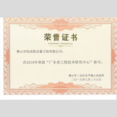 獎 項:廣東省工程技術研究中心——恒潔凱樂德