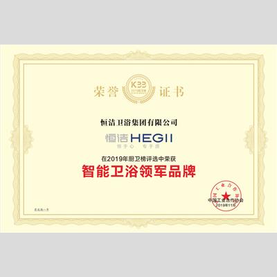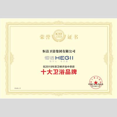 獎 項:2019家居行業影響力品牌——恒潔衛浴