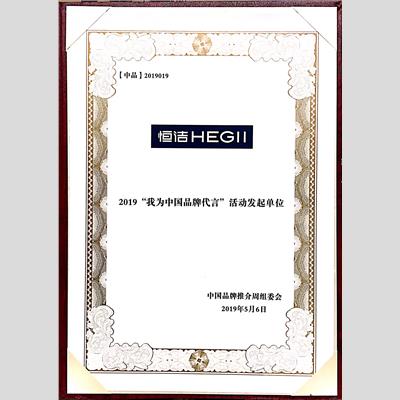 獎 項:2019“我為中國品牌代言”活動發(fā)起單位