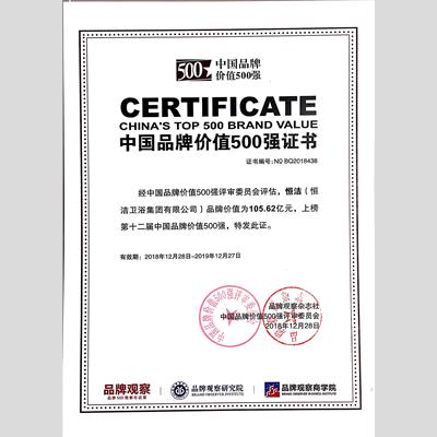 獎 項:2018中國品牌價值500強企業