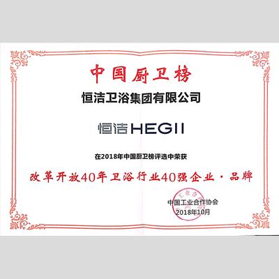 獎 項:改革開放40年衛(wèi)浴行業(yè)40強企業(yè)·品牌