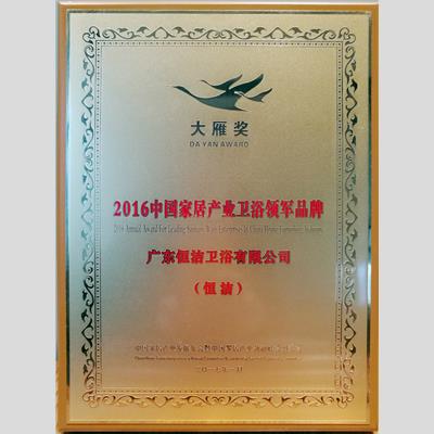 獎 項:大雁獎 2016中國家居產業衛浴領軍品牌