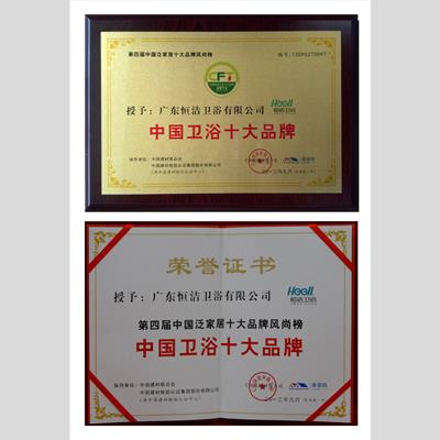 獎 項:第四屆中國泛家居十大品牌風尚榜-中國衛浴十大品牌