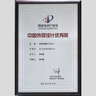 獎 項:中國外觀設計優秀獎--連體座便器H0128(專利號 ZL201030160572.9 設計人:謝偉藩,專利權人:謝偉藩)