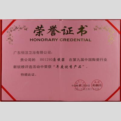 獎 項:第九屆中國陶瓷行業新銳榜年度優秀產品-H0129D