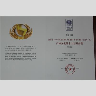 獎 項:百姓喜愛的十大潔具品牌