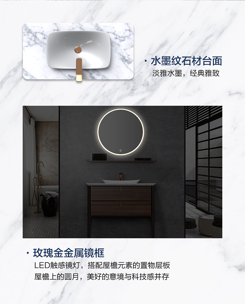 - 玫瑰金金屬邊緣 + LED觸感鏡燈,創(chuàng)新設(shè)計與科技感并存
