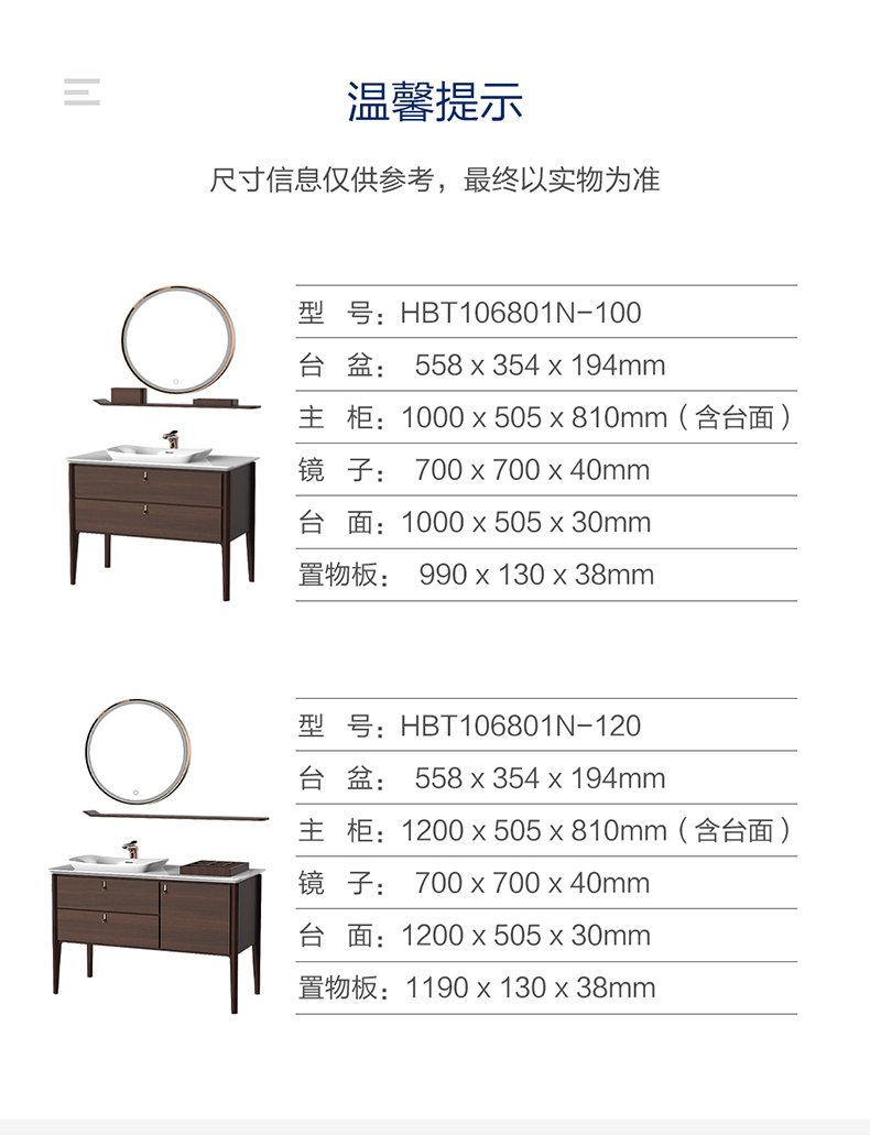 HBT106801N-100 (經(jīng)典胡桃木色)實木浴室柜