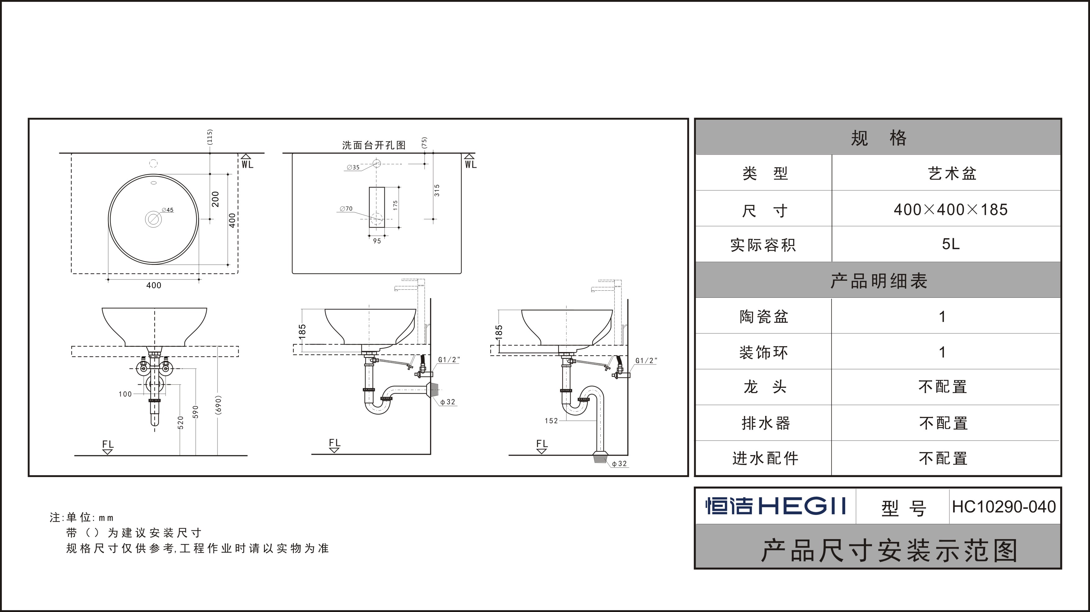 HC10411-046 圓形半嵌入式藝術盆